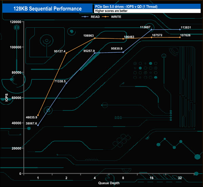 Transfer Request Size: 128KB, Thread(s): 1, Outstanding I/O: 1-32.