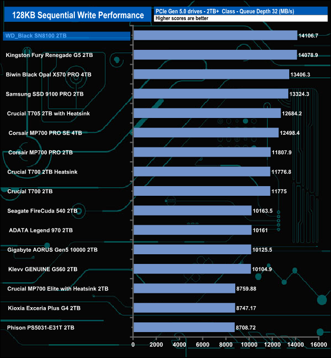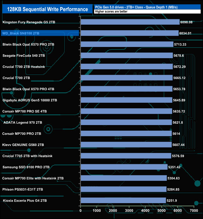 When it comes to Sequential write performance, the drive sits in second spot behind Kingston's Fury Renegade G5 drive at QD1 and QD4; however, at QD's 2 and 32, the positions are reversed.