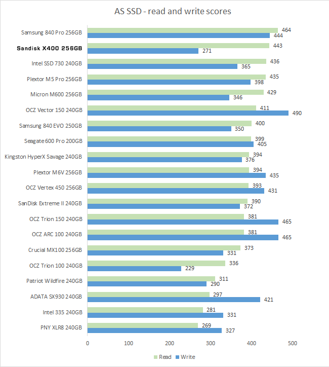 The AS SSD benchmark uses incompressible data to test drives. On the whole the Marvell controller deals with it quite well, but is let down a little by the 4K read and 4K-64Thrd write performance.