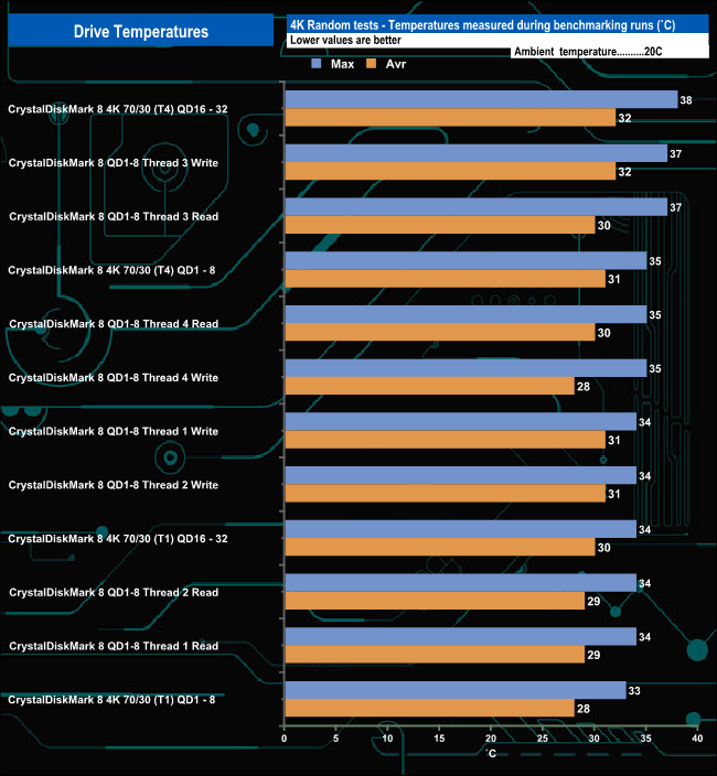 We took note of the drive’s temperature during some of our benchmarking runs.