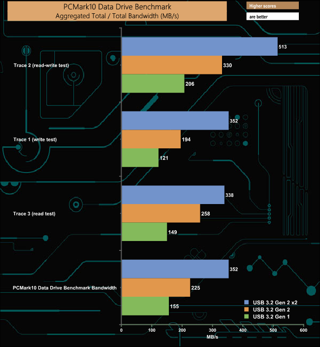 The PCMark 10 Data Drive Benchmark has been designed to test drives that are used for storing files rather than applications. You can also use this test with NAS drives, USB sticks, memory cards, and other external storage devices.