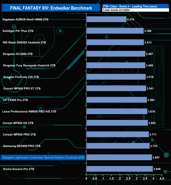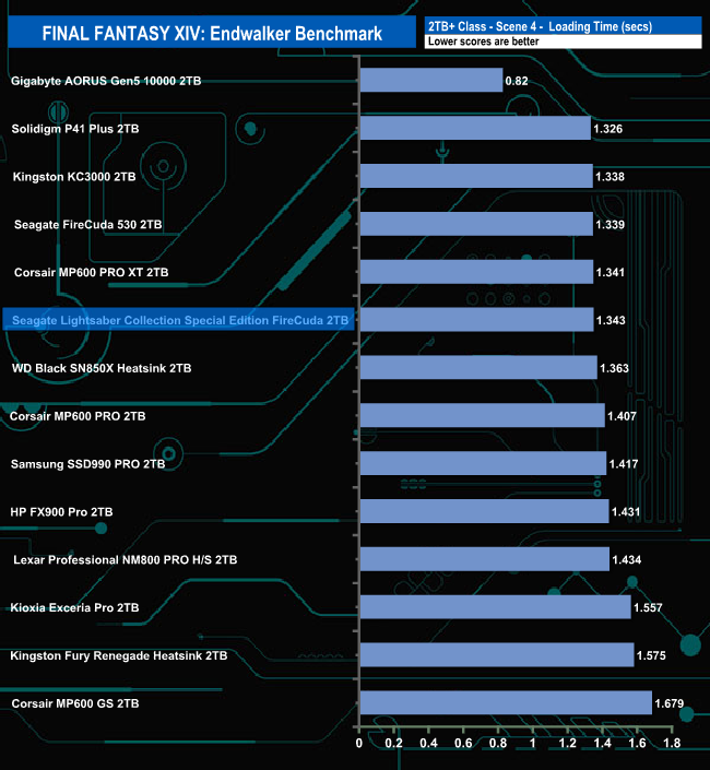 Overall the Seagate Lightsaber Collection Special Edition FireCuda is slightly slower than the standard FireCuda 530 that it uses at its core. It trails the standard drive in all the scene load times except for Scene 1 where it's faster.