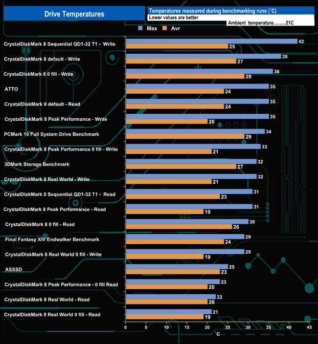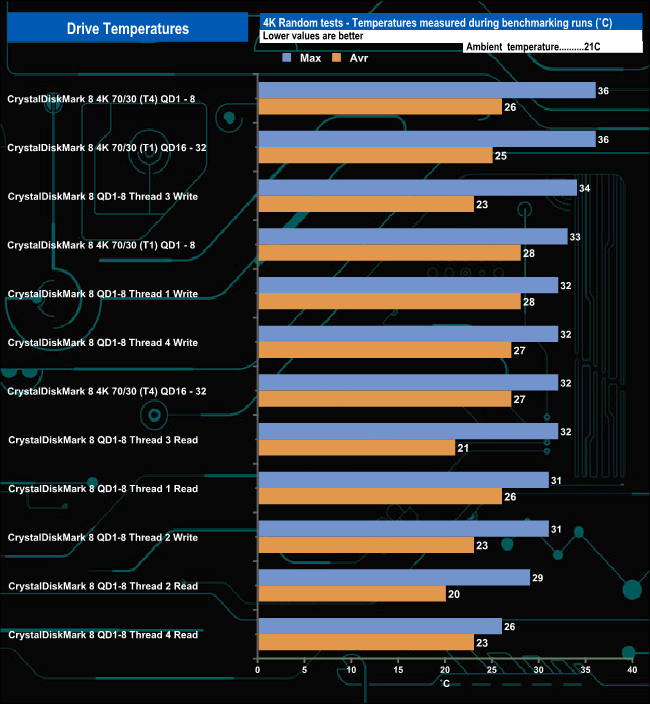 We took note of the drive’s temperature during some of our benchmarking runs.