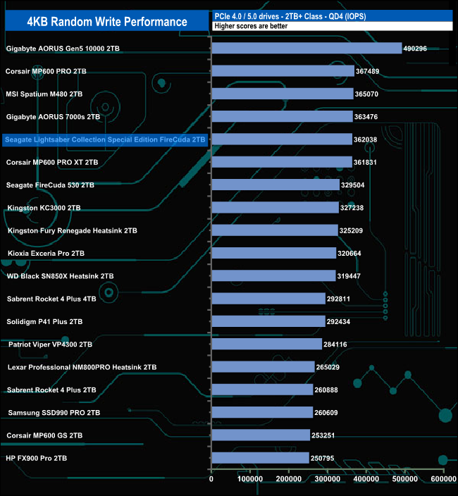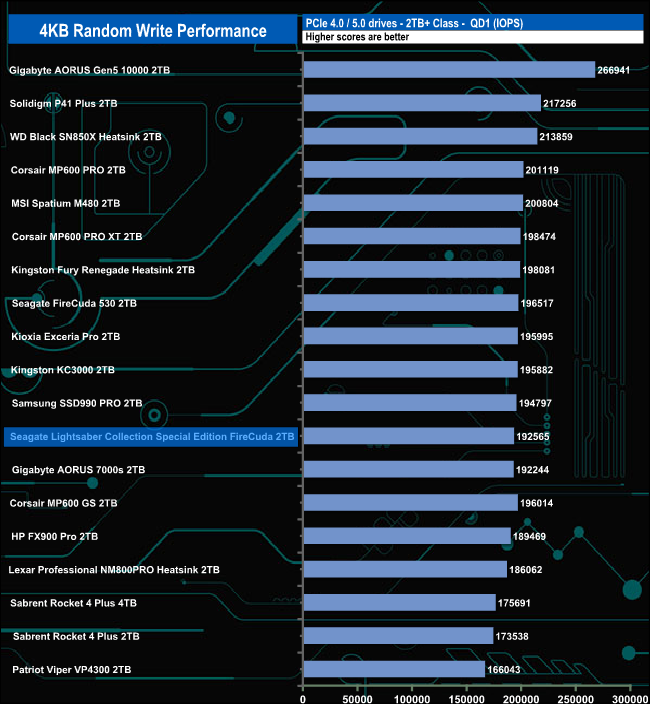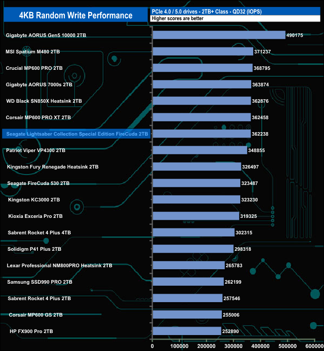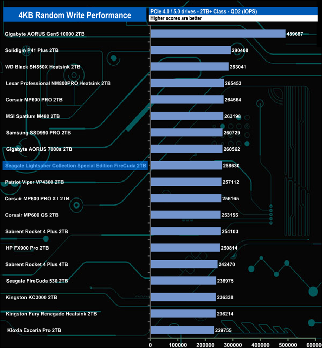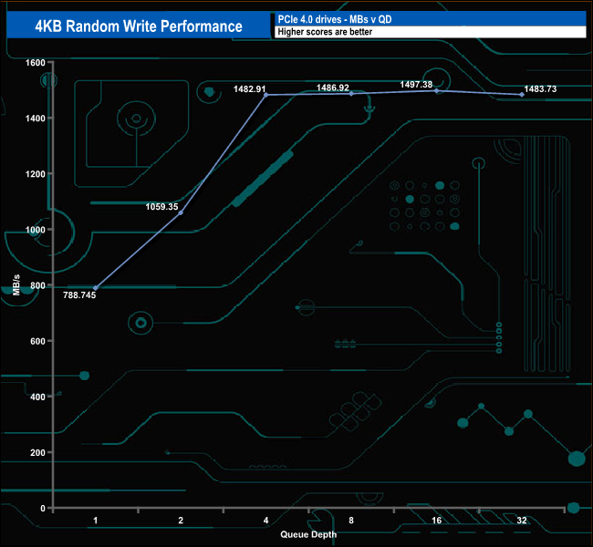 We used CrystalDiskMark 8‘s custom settings to test the 4K random write performance of the drive through a range of queue depths. The setup for the tests is listed below.