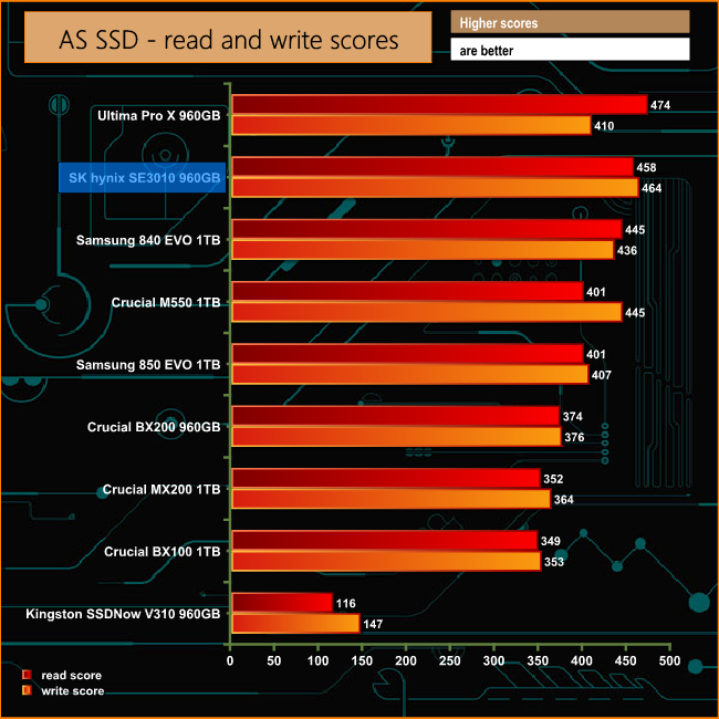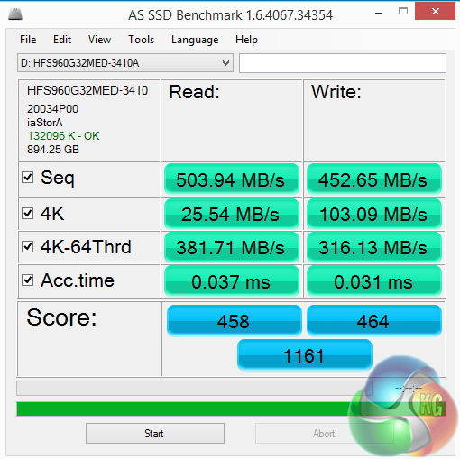AS SSD is a great free tool designed just for benching Solid State Drives. It performs an array of sequential read and write tests, as well as random read and write tests with sequential access times over a portion of the drive. AS SSD includes a sub suite of benchmarks with various file pattern algorithms but this is difficult in trying to judge accurate performance figures.