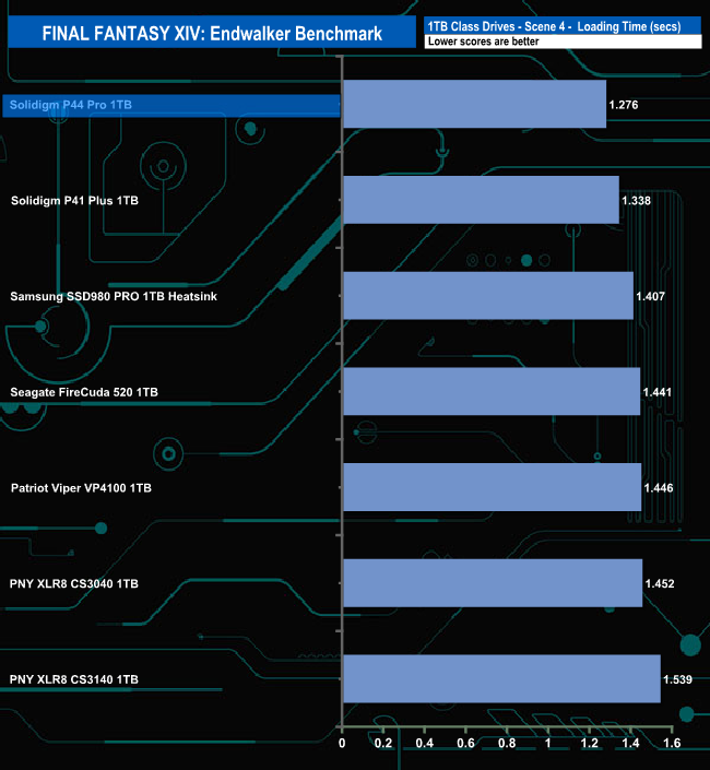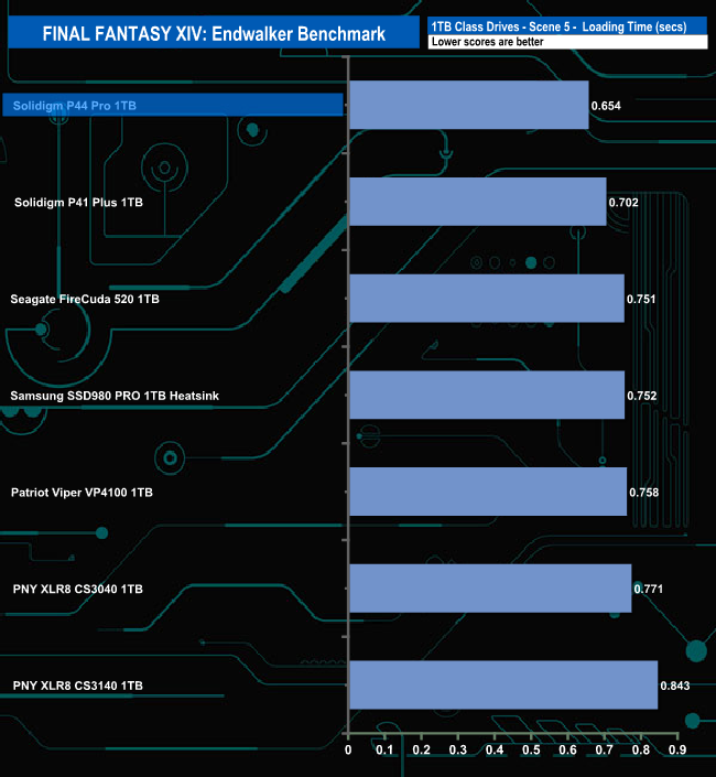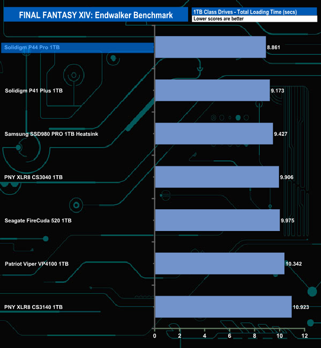 The Solidigm P44 Pro total load time of 8.861 seconds is the fastest we've seen to date for this test.