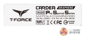 The rear of the box carries another image (this time life-size). To the right of the image is a small multilingual information panel under which is a small list of some of the drives features. To aid in cooling the drive, Teamgroup supplies a very thin Graphene heatsink bundled in the box.