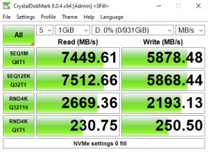 CrystalDiskMark is a useful benchmark to measure theoretical performance levels of hard drives and SSD’s. We are using v8.0.