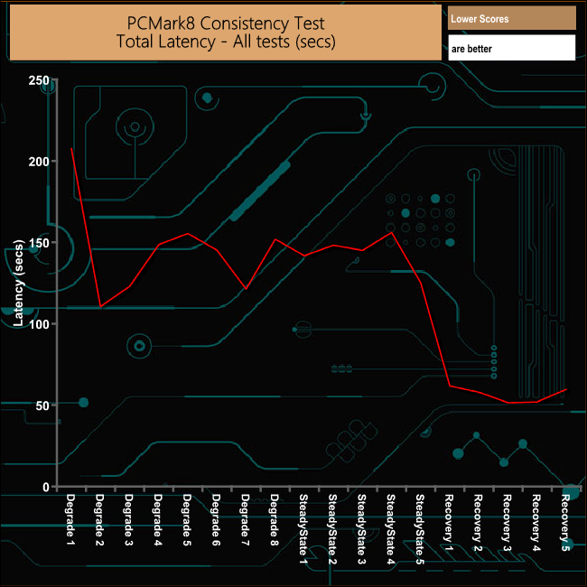 Futuremark’s PCMark 8 is a very good all-round system benchmark but it’s Storage Consistency Test takes it to a whole new level when testing SSD drives. It runs through four phases; Preconditioning, Degradation, Steady State, Recovery and finally Clean Up. During the Degradation, Steady State and Recovery phases it runs performance tests using the 10 software programs that form the backbone of PCMark 8; Adobe After Effects, Illustrator, InDesign, Photoshop Heavy and Photoshop Light, Microsoft Excel, PowerPoint, Word, Battlefield 3 and World of Warcraft. With some 18 phases of testing, this test can take many hours to run.