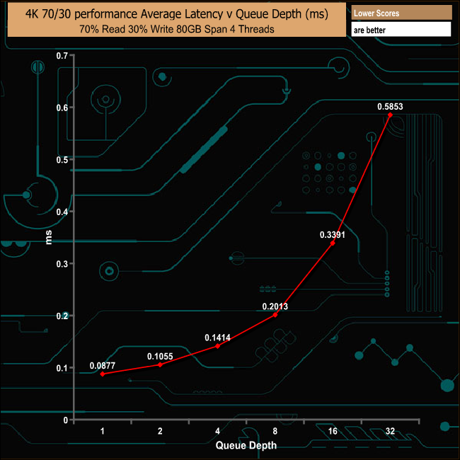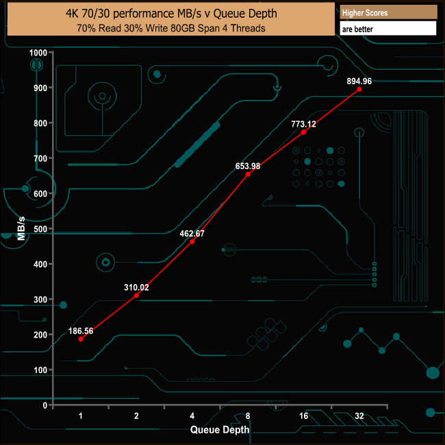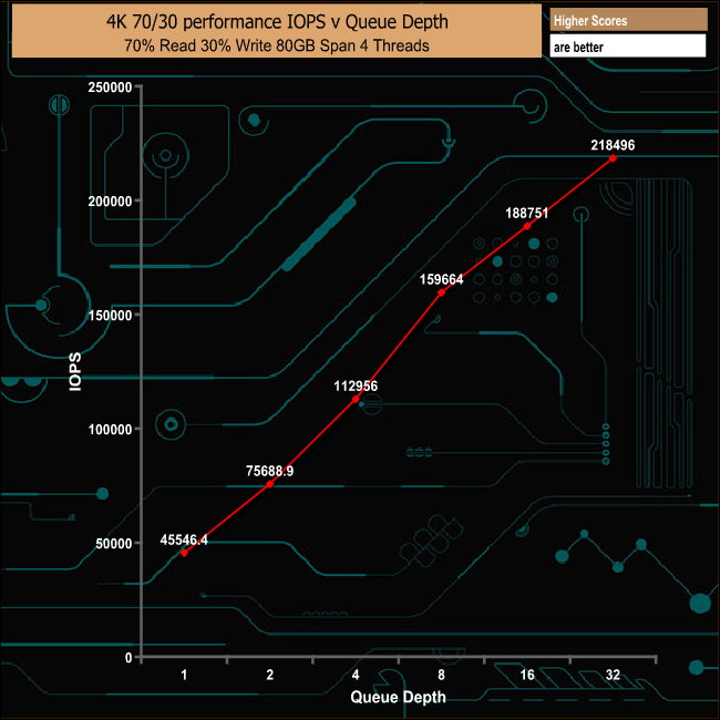 Toshiba's XG6 M.2 NVMe drive has been designed for the OEM market, destined to be installed into performance laptops, desktop and gaming PCs. However, the most important thing about the drive is that XG6 is the first SSD to use 96-layer 3D TLC NAND. The XG6 family consists of three capacities; 256MB, 512MB and the flagship 1TB drive we are reviewing here. The drives use the latest Toshiba 96-Layer BiCS4 3D TLC NAND which is looked after by a Toshiba TC58NCP090GSB 8-channel controller, the same one that's used by the previous generation XG5 drive which uses 64-layer 3D TLC NAND. Toshiba quote performance figures for the 1TB XG6 of up to 3,180MB/s for Sequential reads and up to 3,000MB/s for Sequential writes. 4K random performance is quoted as up to 355,000 IOPS for reads and 365,000 IOPS for writes. There's no mention of the drives endurance on the specification sheet at the time of writing, but Toshiba back the drive with a 5-year warranty. Physical Specifications: Usable Capacities: 1TB NAND Components: Toshiba 96-layer BiCS4 3D TLC. NAND Controller: Toshiba TC58NCP090GSB (8-channel). Cache: 512MB LDDDR3. Interface: PCIe 3.1 x4 (NVMe 1.3a). Form Factor: M.2 2280. Dimensions: 22 x 80 x 2.23 mm. Weight: 7.3g Firmware Version: AGXA4001 Toshiba's XG6 is built on a single sided M.2 2280 format. The label on top of the components is unusually thick which makes you think that it may contain a cooling aid such as a copper layer - it doesn't, it's just a thick label. The 1TB XG6 uses two NAND packages each containing eight 512Gb BiCS4 3D TLC dies. Next to these on the PCB sit the TC58NCP090GSB 8-channel controller and a 512MB Nanya LPDDR3 cache IC. For testing, the drives are all wiped and reset to factory settings by HDDerase V4. We try to use free or easily available programs and some real world testing so you can compare our findings against your own system. This is a good way to measure potential upgrade benefits. Main system: Intel Core i7-7700K with 16GB of DDR4-3200 RAM, Sapphire R9 390 Nitro and an Asus Prime Z270-A motherboard. Other drives: Corsair Force MP500 480GB Corsair Force MP510 960GB Intel Optane SSD900P 480GB Intel Optane SSD905P 480GB Intel SSD760p 512GB Kingston A1000 480GB Plextor M9Pe(Y) 512GB Plextor M8PeG 512GB PNY CS2030 240GB Samsung SSD970 EVO 2TB Samsung SSD970 PRO 1TB Samsung SSD960 PRO 2TB Samsung SSD960 EVO 1TB Toshiba OCZ RD400 512GB Western Digital Black NVMe 1TB Western Digital Black PCIe 512GB Software: ATTO Disk Benchmark 3.5. CrystalDiskMark v6 ASSD v2.0 IOMeter. Futuremark PC Mark 8 All our results were achieved by running each test five times with every configuration this ensures that any glitches are removed from the results. Trim is confirmed as running by typing fsutil behaviour query disabledeletenotify into the command line. A response of disabledeletenotify =0 confirms TRIM is active. CrystalDiskMark is a useful benchmark to measure theoretical performance levels of hard drives and SSD’s. We are using v6.0. When tested at a queue depth of 32 using CrystalDiskMark the performance of the XG6 lags behind all the other drives we've tested in both read and writes. However testing the drive at a QD of 1 which is much more like the level it will face in real life, the drive performs reasonably well. The ATTO Disk Benchmark performance measurement tool is compatible with Microsoft Windows. Measure your storage systems performance with various transfer sizes and test lengths for reads and writes. Several options are available to customize your performance measurement including queue depth, overlapped I/O and even a comparison mode with the option to run continuously. Use ATTO Disk Benchmark to test any manufacturers RAID controllers, storage controllers, host adapters, hard drives and SSD drives and notice that ATTO products will consistently provide the highest level of performance to your storage. We are using version 3.5 for our NVMe disk tests. Toshiba quote Sequential performance figures for the 1TB XG6 as up to 3,180MB/s and 3,000MB/s for reads and writes respectively. Using the ATTO benchmark we were able to squeeze a wee bit more read performance out of the drive at 3,255MB/s while writes came in at 3,026MB/s. AS SSD is a great free tool designed just for benching Solid State Drives. It performs an array of sequential read and write tests, as well as random read and write tests with sequential access times over a portion of the drive. AS SSD includes a sub suite of benchmarks with various file pattern algorithms but this is difficult in trying to judge accurate performance figures. We are using the 2.0 version for NVMe drive testing. The 1774 read and 1935 write scores in ASSSD place the drive firmly in the middle of the pack of the NVMe drives we have tested. IOMeter is another open source synthetic benchmarking tool which is able to simulate the various loads placed on hard drive and solid state drive technology. There are many ways to measure the IOPS performance of a Solid State Drive, so our results will sometimes differ from manufacturer’s quoted ratings. We do test all drives in exactly the same way, so the results are directly comparable. We test 128KB Sequential read and write and random read and write 4k tests. The test setup’s for the tests are listed below. Each is run five times. 128KB Sequential Read / Write. Transfer Request Size: 128KB Span: 8GB Thread(s): 1, Outstanding I/O: 1-32 Test Run: 20 minutes per test. 4K Sustained Random Read / Write. Transfer Request Size: 4KB Span: 80GB Thread(s): 4, Outstanding I/O: 1-32 Test Run: 20 minutes per test. 4K Random 70/30 mix Read/Write. Transfer Request Size: 4KB Span: 80GB Reads: 70% Writes: 30% Thread(s): 4 Outstanding I/O: 2 – 32 Test Run: 20 minutes. 128KB Sequential Performance When tested with our 128KB Sequential tests, the drive produced a peak read figure of 3,253.88MB/s while writes peaked at 3,188.37MB/s before dropping back towards the end of the test run. 128KB Sequential