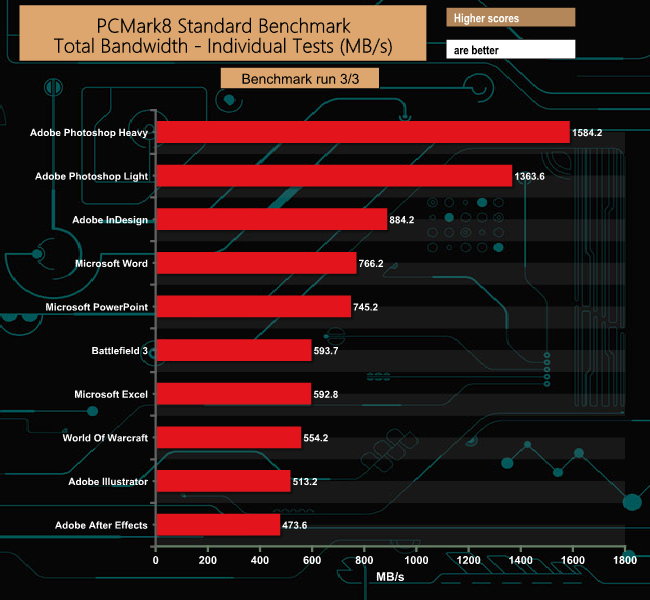 The drive produces some strong bandwidth figures in the last run of PCMark 8's Standard Storage test.