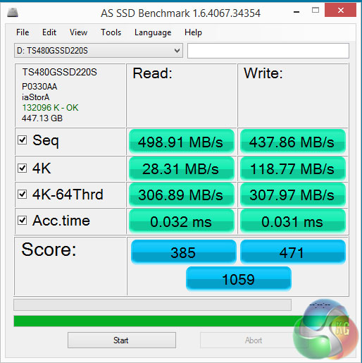 Testing the drive with the AS SSD benchmark produced strong 4K write performance at both shallow and deeper queue depths. It even manages to outperform Transcend's flagship SSD370 in this test.