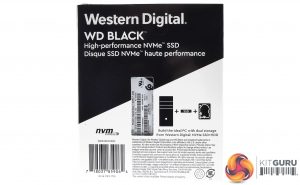 The WD Black NVMe comes in a smallish box with a clear image of the drive on the front. WD is obviously keen to let you know that this is a fast drive, too, as the 3400MB/s read figure is displayed in the bottom left corner of the box. Next to this are three boxes displaying the capacity of the drive, the fact it uses 3D NAND and that it comes with a 5 year warranty.