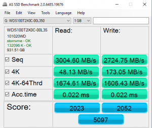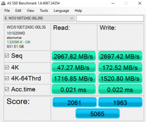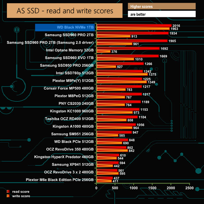 As with the ATTO benchmark, the drive's performance in the AS SSD benchmark is very impressive. The read score of 2016 and the 1963 for writes are again the fastest we have seen for a consumer drive to date.