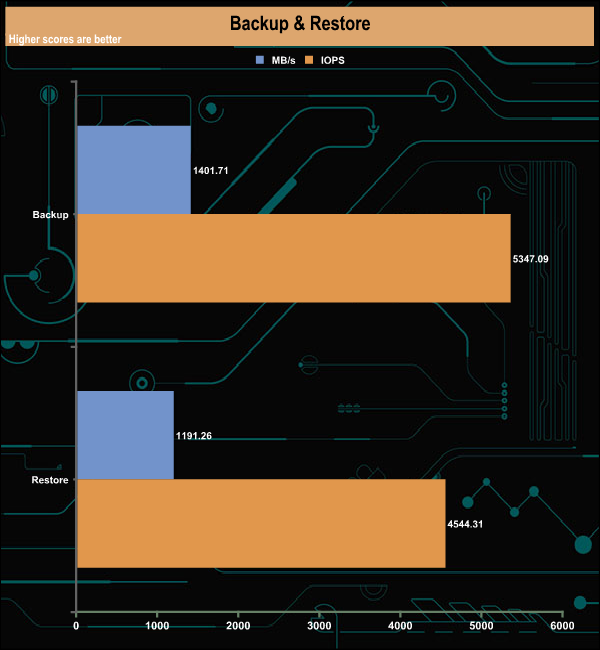 We set IOmeter up (as shown above) to test both backup and restore performance on a 100GB file.