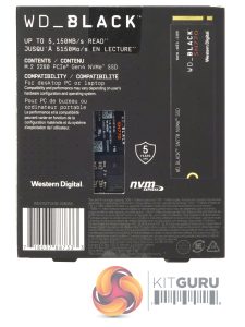 The WD Black SN770 comes in a smallish box with a clear image of the drive on the front. Under the image is the drive's capacity, the fact it's a Gen4 drive and the Sequential read performance figure (up to 5,150MB/s).