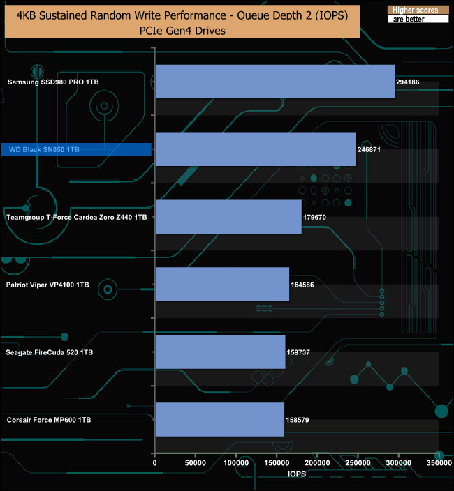 4K Random Write v QD Performance Comparison.