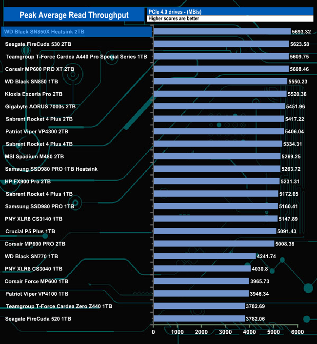 The peak write result we saw of 5,912MB/s is only good enough to see it placed in mid-table in our results chart, but it is some 280.57MB/s faster than the WD Black SN850.