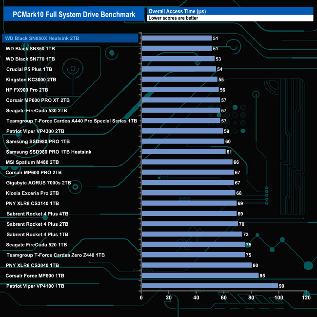 The overall bandwidth figure of 516.11MB/s sees the WD Black SN850X Heatsink just take over the top spot in the chart from the SN850, although there's not a lot in it.