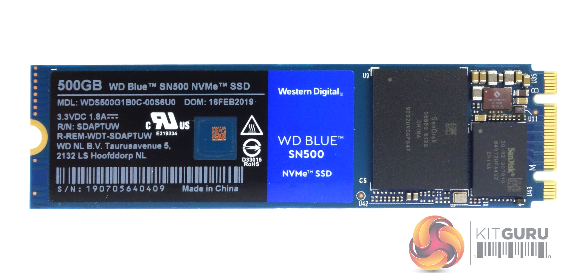 WD’s Blue SN500 is a single sided PCB design, so the rear of the drive is empty and to be honest so is much of the front, with all of the drive's electrical components built onto the PCB just behind the interface contacts. Being a DRAM-less design, the only two major chips on the board are the in-house WD controller (SanDisk 20-82-007010) and a single 500GB NAND package of SanDisk 64-Layer 3D TLC NAND.
