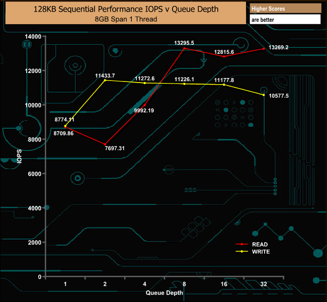 When it When it comes to Sequential read performance the drives performance tails off in relation to its competitors as the queue depth deepens.