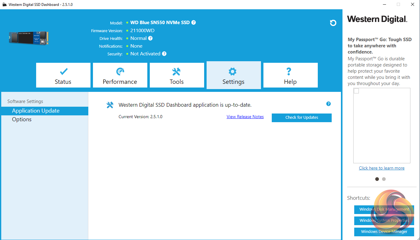 WD's SSD management utility goes under the name of SSD Dashboard. With it, you can monitor drive status, performance, update firmware and monitor temperatures. There’s no cloning tool integrated into the utility but you can download Acronis True Image WD Edition from the WD website.