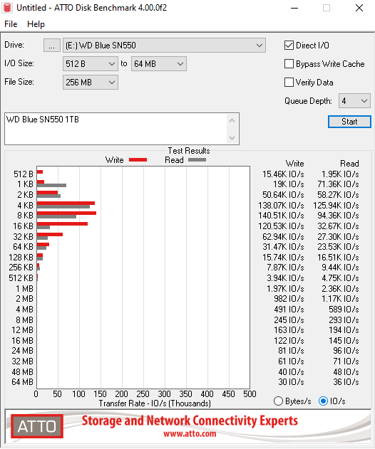 The ATTO Disk Benchmark performance measurement tool is compatible with Microsoft Windows. Measure your storage systems performance with various transfer sizes and test lengths for reads and writes. Several options are available to customize your performance measurement including queue depth, overlapped I/O and even a comparison mode with the option to run continuously.