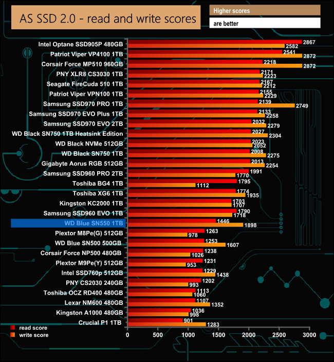 With its read/write scores of 1446 and 1898 respectively, the new SN550 is comfortably faster than previous SN500 drive.