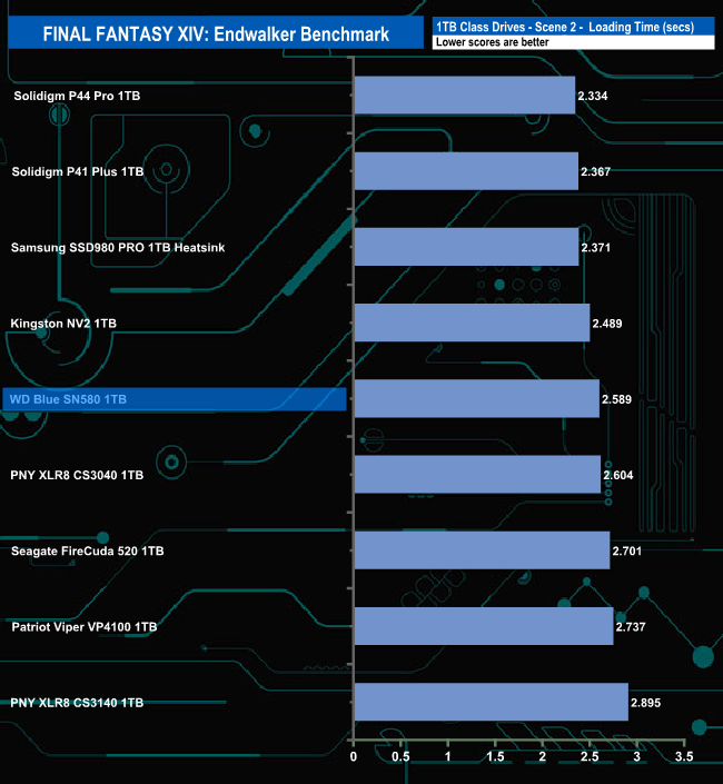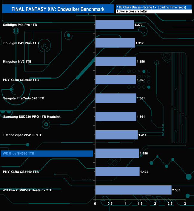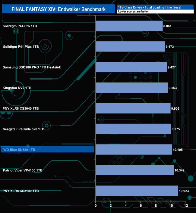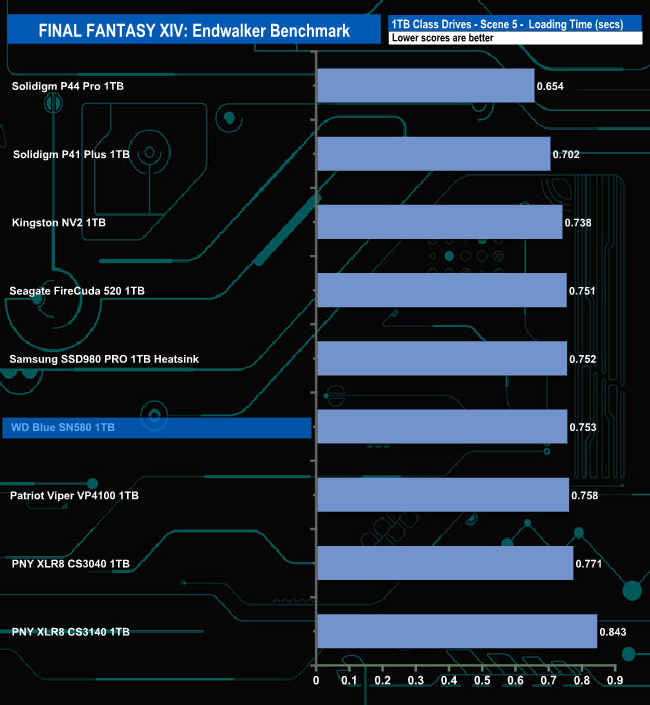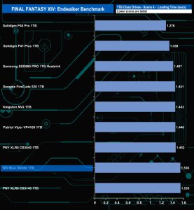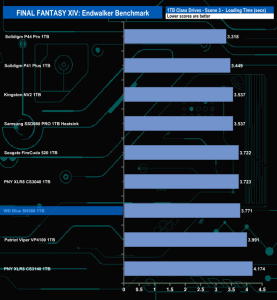 The SN580 doesn't appear to handle the Final Fantasy XIV Endwalker Official Benchmark very well as it sits very close to the bottom place in the results charts for three out of the five tests.