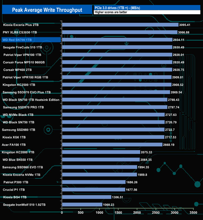 The write throughput result of 2,934.11MB/s sees the drive enter the results chart as the fastest WD NVMe drive we've seen to date.