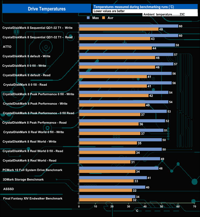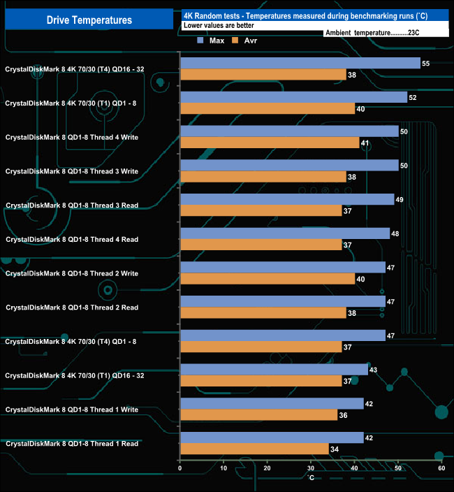 We took note of the drive’s temperature during some of our benchmarking runs.