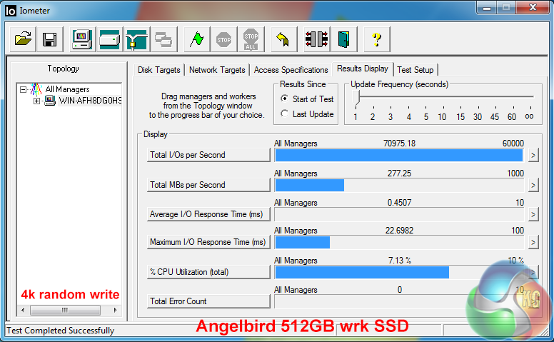 We test with both random read and write 4k tests, as shown above. There are many ways to measure the IOPS performance of a Solid State Drive, so our results will often vary between the manufacturer’s quoted ratings.