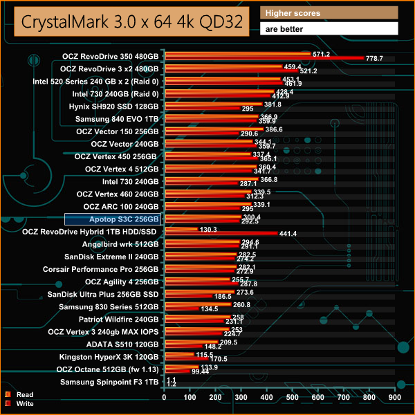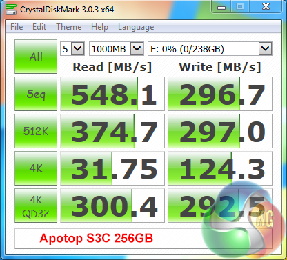 Crystalmark is a useful benchmark to measure theoretical performance levels of hard drives and SSD’s. We are using V3.0.3.