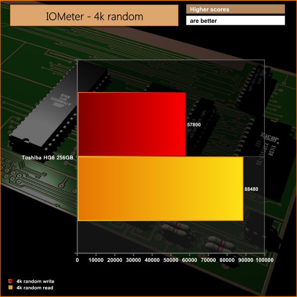 Intel's official IOPS performance is rated at 86,000 read and 56,000 write, so our results are actually higher than Intel's official claims.