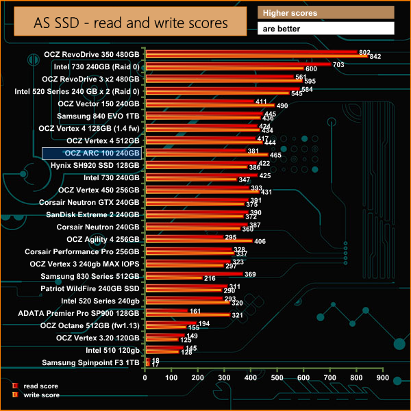 AS SSD deals exclusively with incompressible data and we can see the strength of the OCZ Barefoot 3 M10 controller, scoring in the upper half of the chart. The total score of 1,047 points puts it just ahead of the Hynix SH920/910A which we reviewed last week.