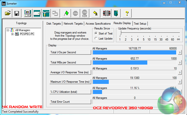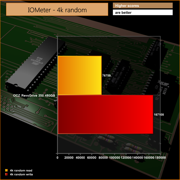 IOPS performance is strong, although the 4k random read test we ran fell a little short of the 90,000 claims by OCZ. On the other hand, the 4K random write test outperformed the 140,000 claims by OCZ – hitting 167,108. Superb results.