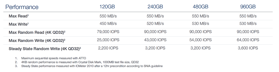 Each Trion 100 drive has a different Total Bytes Written (TBW) endurance rating. The 120GB model is rated at 27GB/day, the 240GB model 55GB/day, 480GB model 110 GB/day and the 960GB model 219GB/day. They are classed as ‘value' level drives in OCZ's own portfolio, underneath gamer, mainstream and entry level.