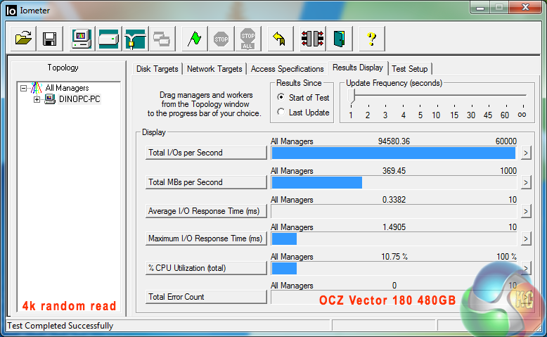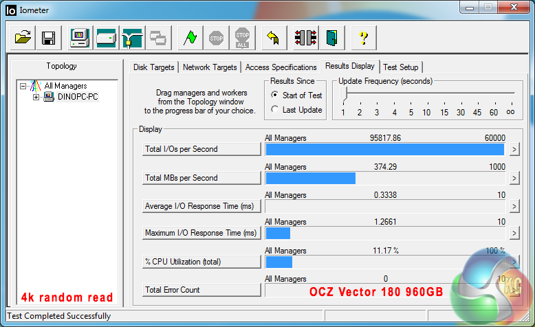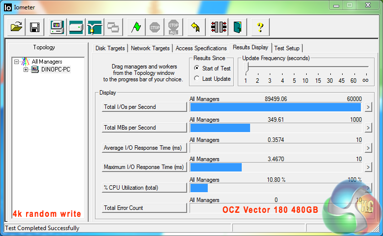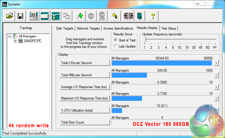 IOPS performance falls a little short of OCZ's official claims of 100,000 read and 95,000 write. Both 480GB and 960GB drives performed to a similar level in our own tests, scoring (approximately) 90,000 write and 95,000 read. These are great results and we would point out that the differences are likely related to variances in testing methodology.