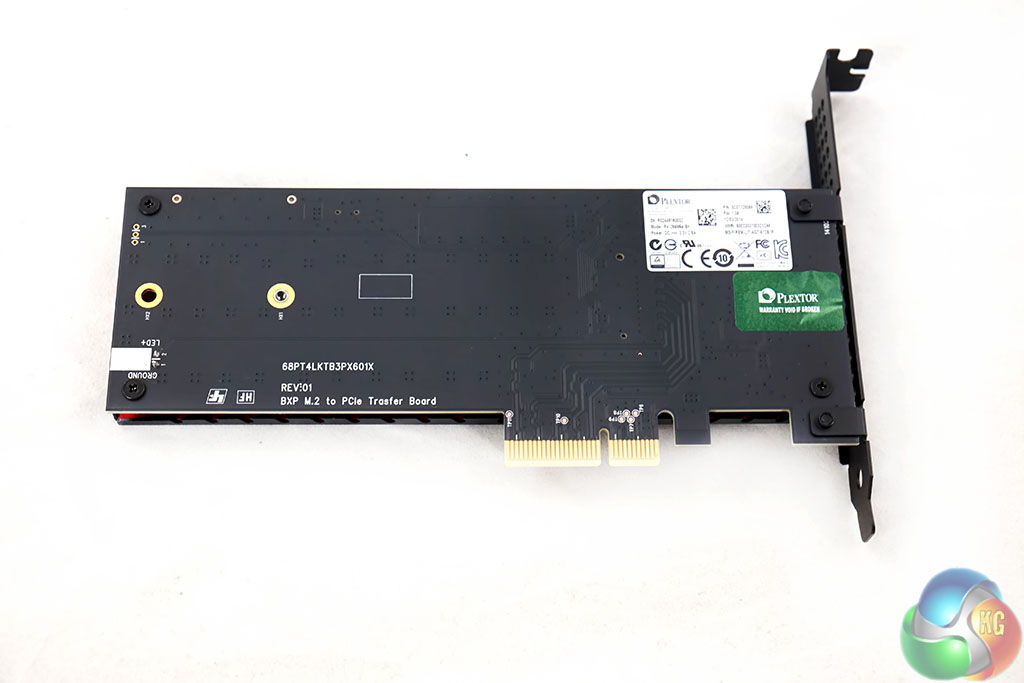 A large red heatsink takes up most of the real estate, positioned alongside the Plextor name. It is a very attractive looking card design and doesn't have any active cooling. It is highly likely the cooling block will really only be beneficial in a worse case scenario – running close to hot graphics cards and in a poorly ventilated case.