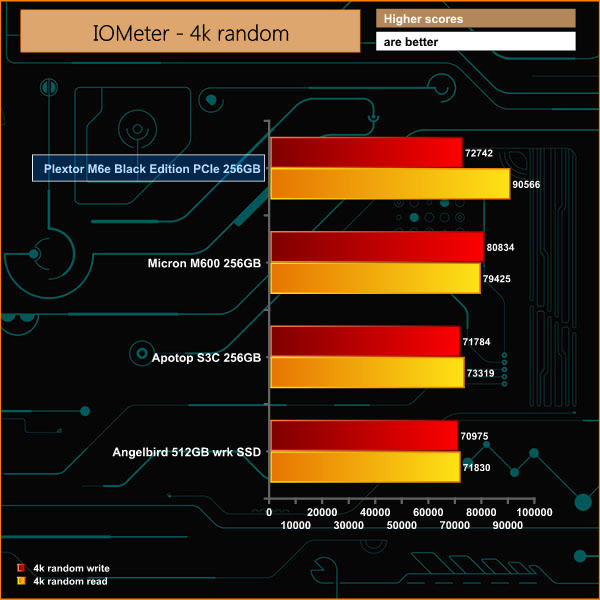 IOPS performance is quite good, although our results fell short of Plextor's official claims of 100k+. There are many different ways to measure 4k performance so there is likely some variation due to this.
