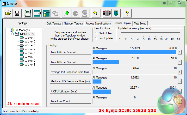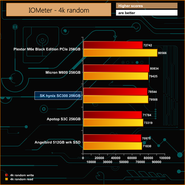 IOPS performance is quite good, although our results fell a little short of the SK hynix official claims of up to 95k read and up to 85k write. We would assume SK hynix use different testing methodology to get the end result.