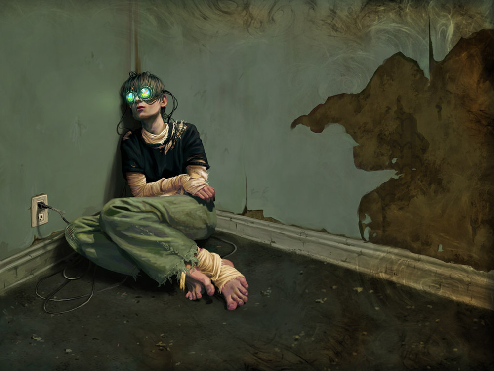 While such a prediction might bring to mind speculative sci-fi images like EranFolio's “Reality,” pictured above, it's an interesting concept. Although one of the biggest selling points of consumer grade virtual reality is roomscale, it doesn't technically require much space to work. Indeed it can save a lot of space if you were to use your VR headset as a TV, monitor, music player, headphones and phone (VOIP).