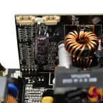 This power supply is an inhouse Seasonic design with high grade Japanese capacitors throughout primary and secondary stages. The primary stage Japanese Capacitor is made by Rubycon, rated 105C, 420V and 440uF. There is a single heatsink which gets cooled directly from the fan above. The soldering across the board is very good throughout.