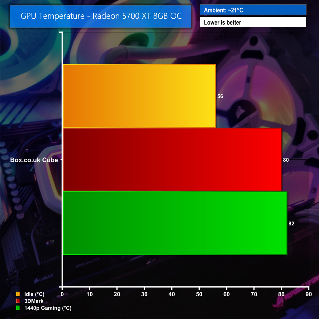 CPU temperatures were also good considering the stress they were under during our tests. GPU temperatures idling around 56C, hitting 80C during 3DMark and 82C whilst playing games at 1440p.