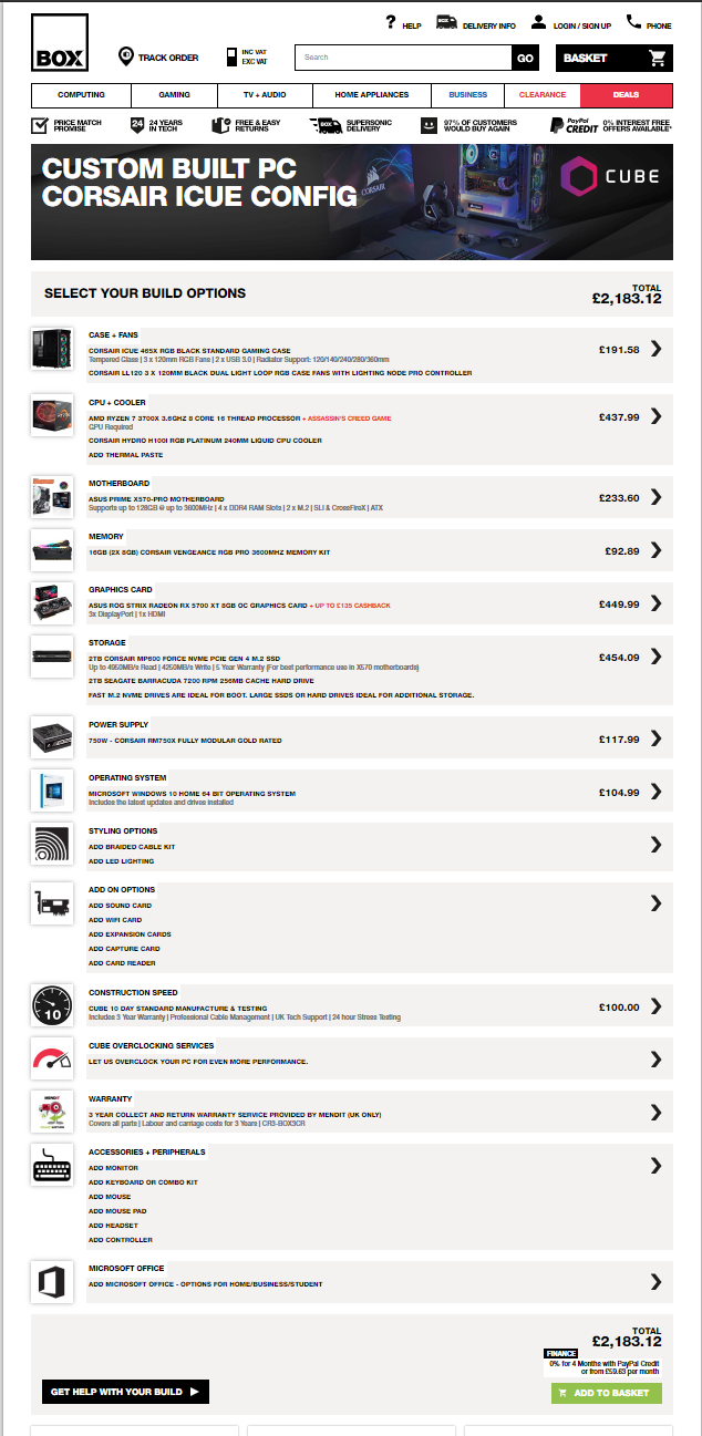 Let’s see roughly what Box are charging for a system like this. Bearing in mind that Box offer a 3 year warranty collect and return service covering all parts, plus on the CUBE configurator it states a £100 fee for 10 day standard manufacturing and testing, giving us a total system cost of £2,183.12.