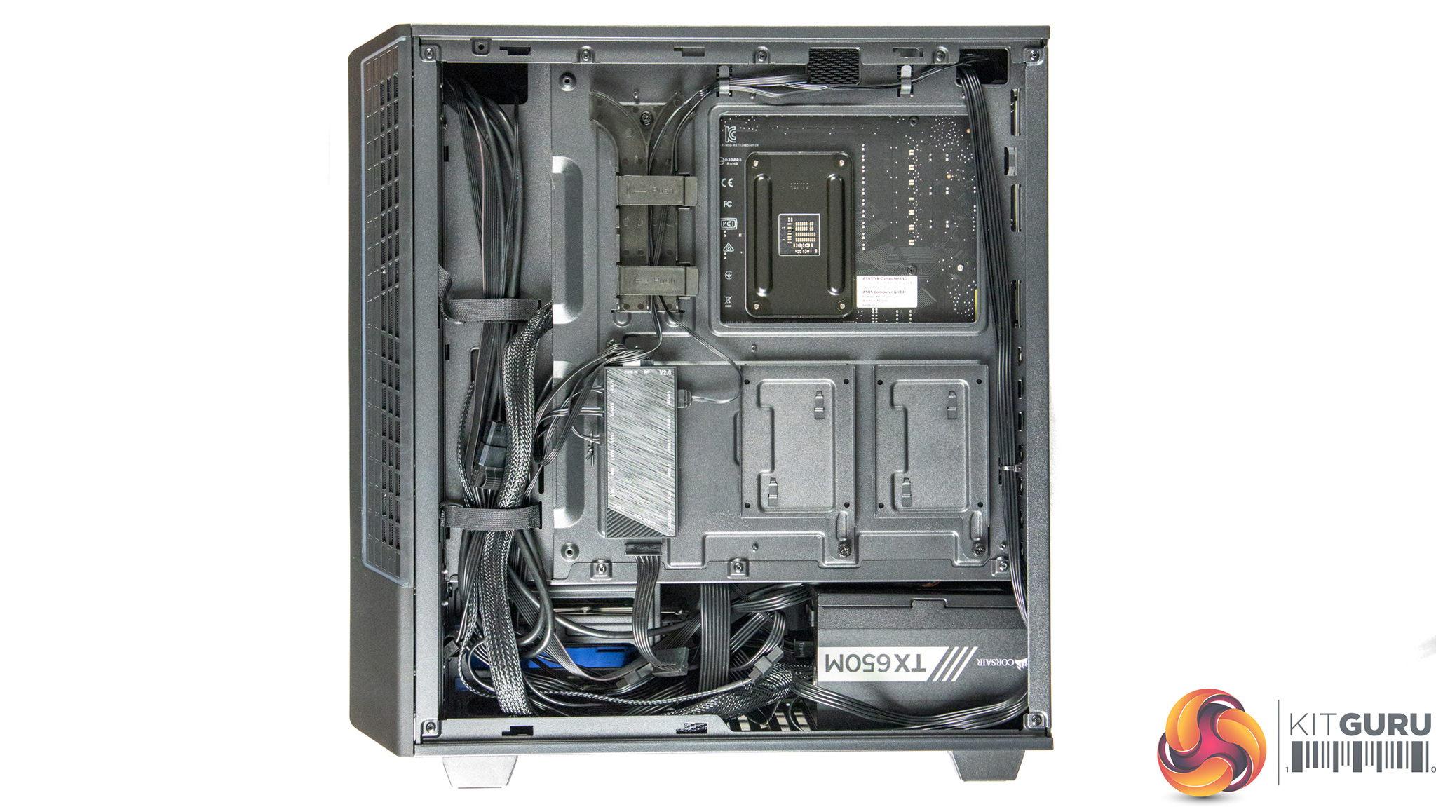 We’ve got an all-black “murdered out” theme and I’m actually really enjoying this stealthy vibe because not one component lets the theme down, everything is pitch black and it looks excellent. The other thing to note is the case choice is excellent for the chosen components, it’s not overly cramped, nor is there lots of empty space within. Cable management is very good both in the front and behind the back panel too, which is always nice to see. They’ve definitely taken care and attention to detail when putting this system together.