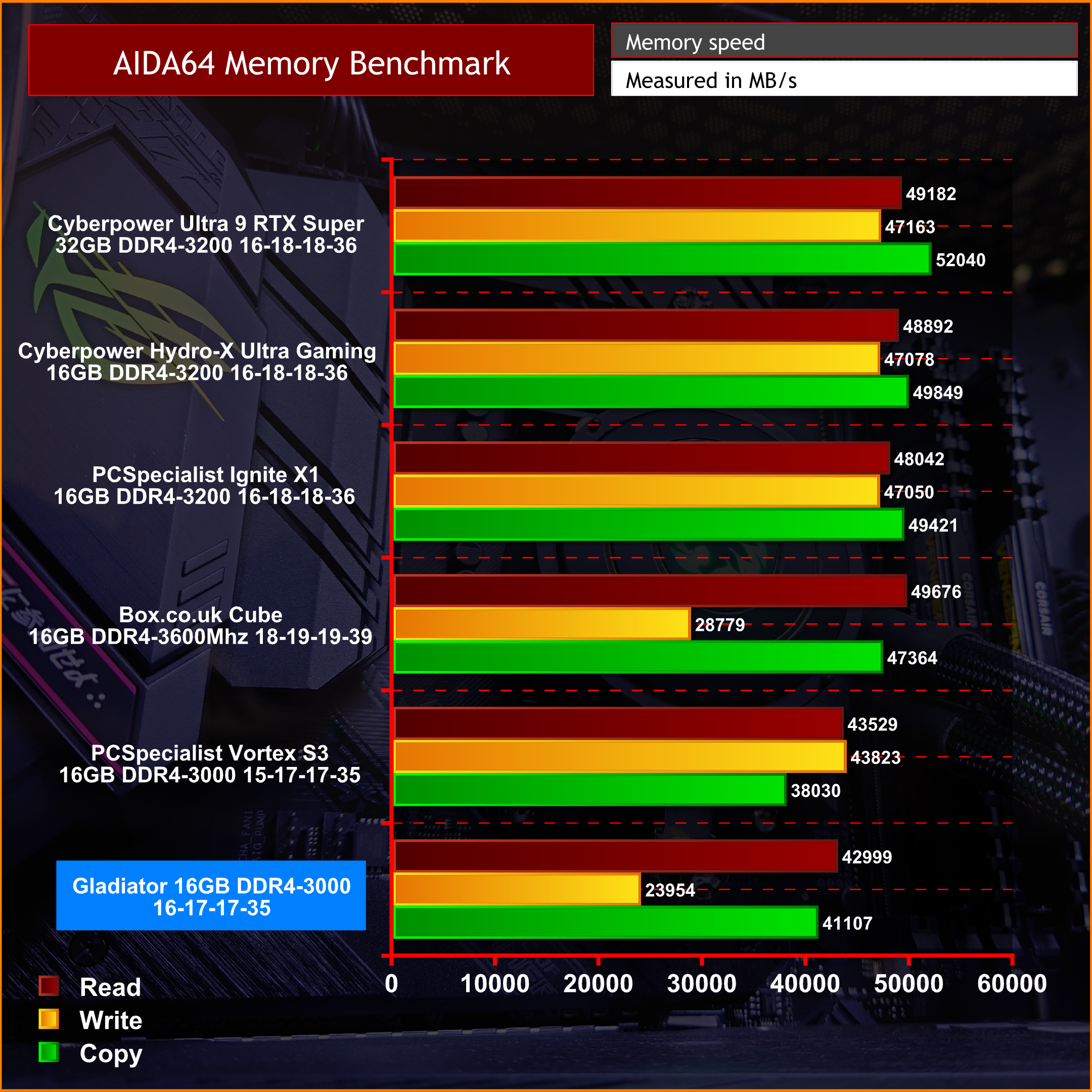 Looking at our memory benchmark does show us a huge dip in write speed performance. If you’ve seen my recent review of the Box.co.uk CUBE system then you’ll see that also had write issues within AIDA64, the chart shows that here but there is a reason. Zen 2 systems with 8 cores and below have roughly a single write path and that gives them half the write speed of their 12-core and above brothers, which have two write paths and normal write speeds. It’s perfectly normal for the 8 core and lower Zen 2 chips to get these results and doesn't really affect real world performance all that much in general. So, don’t worry too much about that score there.