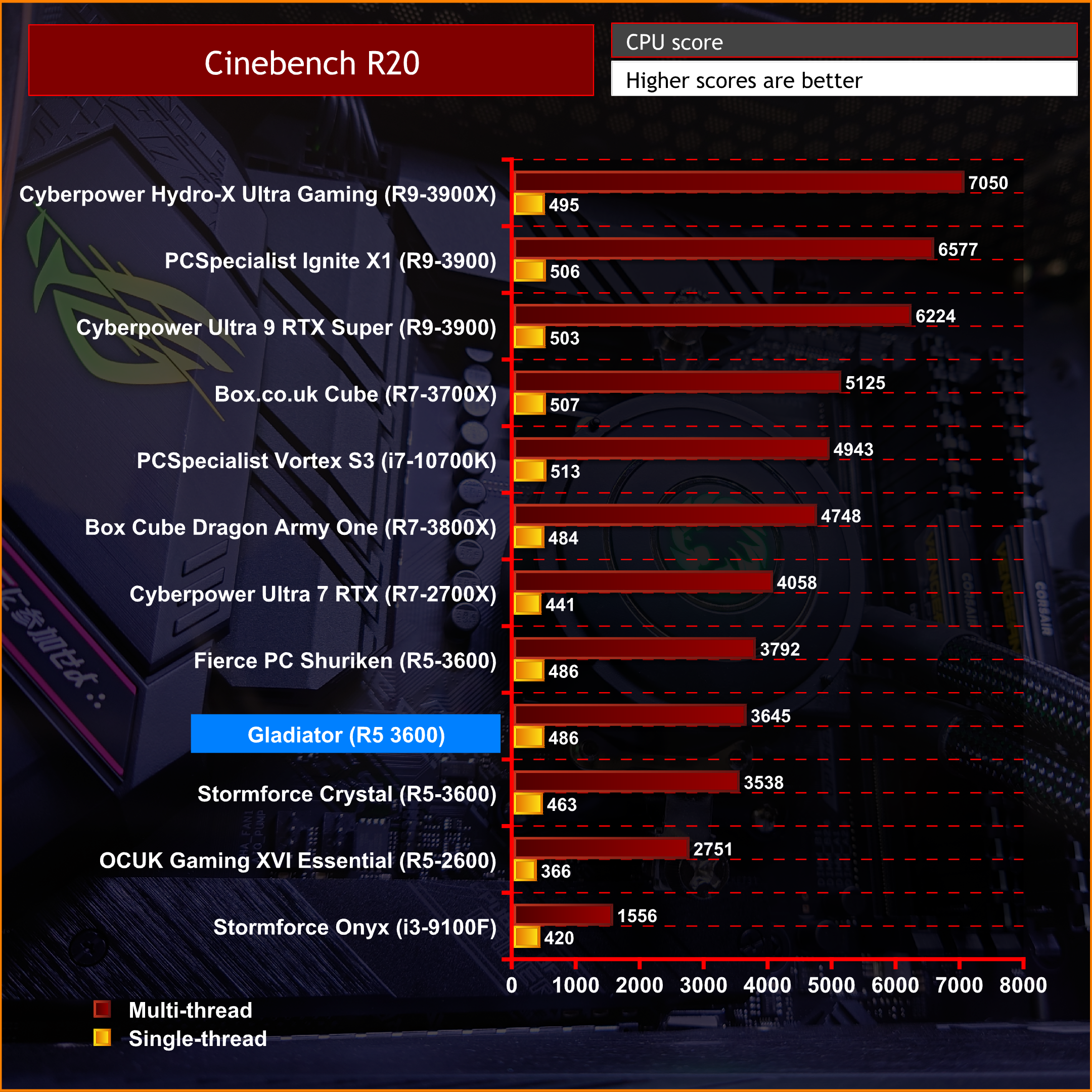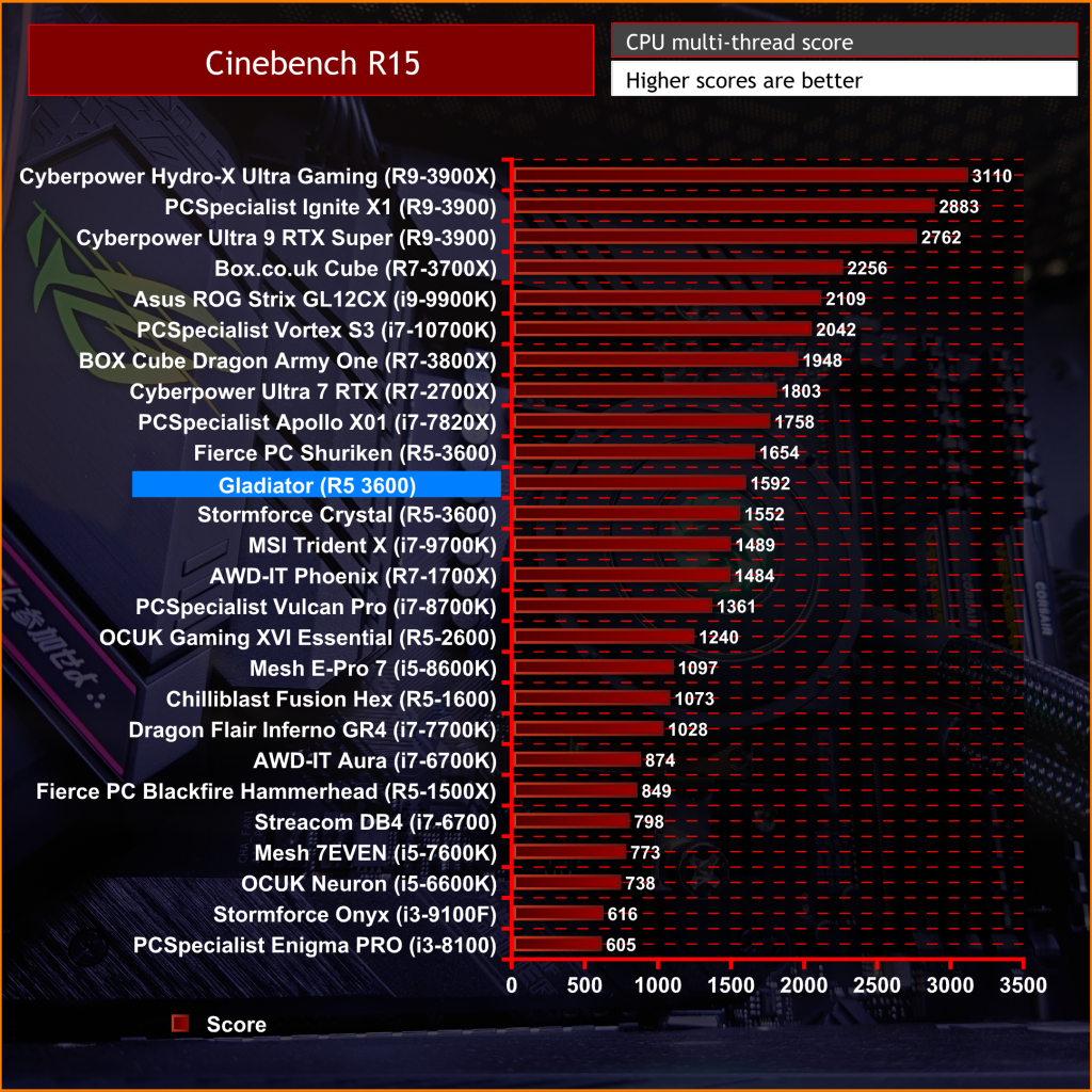 Moving on to our CPU tests, we placed as we expected within our Cinebench R15 and R20 results with our Ryzen 5 3600. Time taken to render our BMW CPU test within Blender was 238 seconds, which is also what we were expecting. PCMark 10 did place the Behemoth last but if you look closer, it's really not far behind the Ryzen 7 system that pipped it to the post.