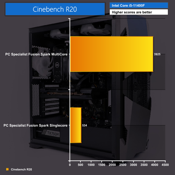 Cinebench R20 scored well with just under 4000 multi-core points and just over 500 single core points.