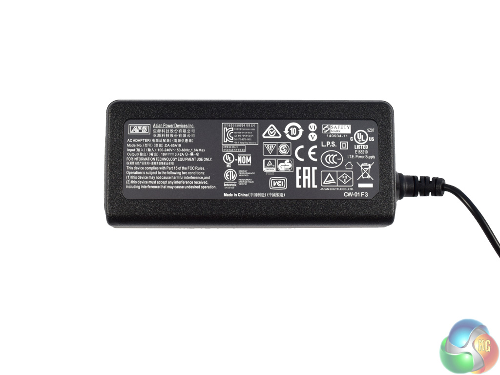 Before moving on, here is a look at the relatively small power brick. Due to Skylake's efficiency and the low-power i5-6200U CPU used here, the power brick is only rated at 65W which should be plenty.